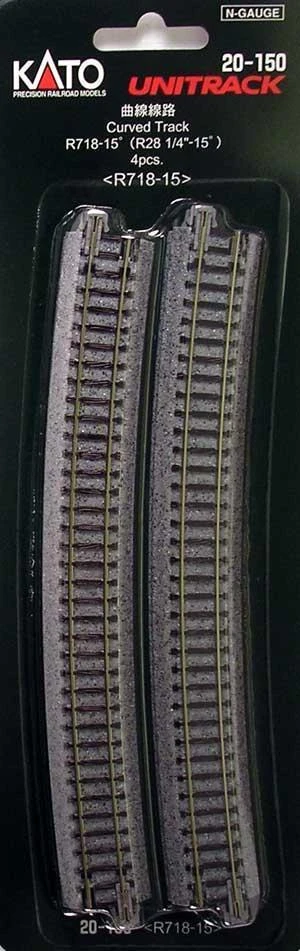 718mm (28 1/4″) Radius 15º Curve Track [4 Pcs] KATO 20-150