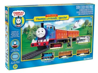 Thomas the Tank EngineTM and his coaches Annie and Clarabel have started on a magical journey across the Island of Sodor. Back at the station, Sir Topham Hatt sends Harold the Helicopter and Bertie the Bus to keep an eye on Thomas to make sure he arrives on time. With our Deluxe Thomas & FriendsTM Special set, you can relive the stories seen in the Thomas & FriendsTM books, television shows, videos and feature film, or create your own railway adventures.