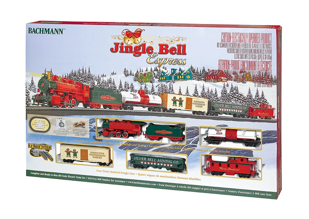 The Jingle Bell Express rushes last-minute wishes from the North Pole to homes around the world. Decked out in red and green and carrying a sweet cargo of holiday treats, the Jingle Bell Express will deliver merry dreams around your Christmas tree for years to come.